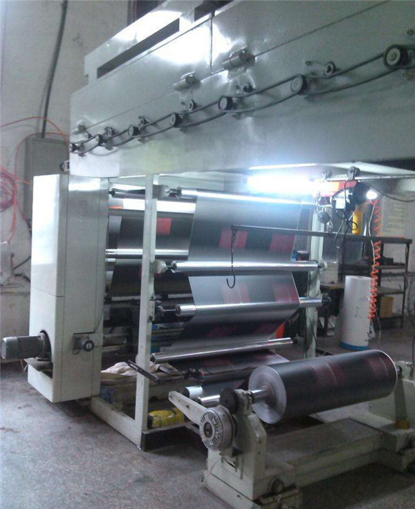 復合部是由復合輥橡膠壓輥組成。已干燥的粘合劑失去了流動性能,但它仍存在蠕動性能。該蠕動性能隨溫度的提高而加大,隨外力的加大而加大,因此在復合系統提供一定的溫度和壓力,不僅進一步活化粘合劑,而且使粘合劑進一步流平,進一步消除粘合劑在薄膜上的細微缺陷。因此,復合輥的溫度和壓力在不影響質量的前提下盡可能高。